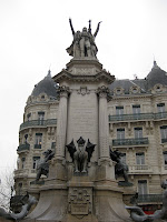 The Statue of Les Trois Ordres, or the 3 orders of classes that existed before the revolution: The Clergy, The Nobility, and The Commoners. This is at Place Notre Dame.